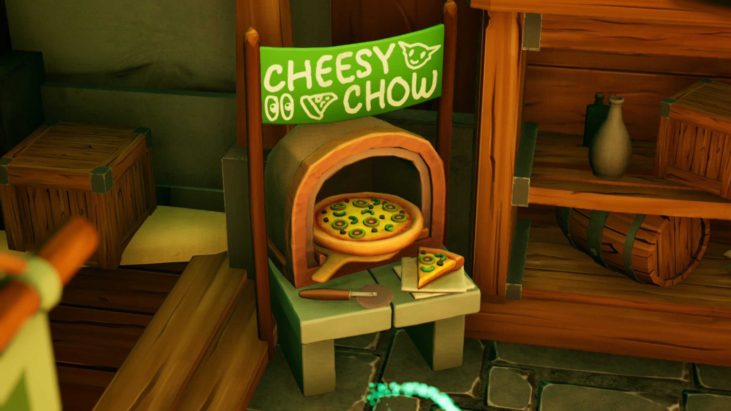 head to your closest cheesy chow dispenser and grab a slice! this is the goblin’s favorite entree, made hot and ready just to their liking.